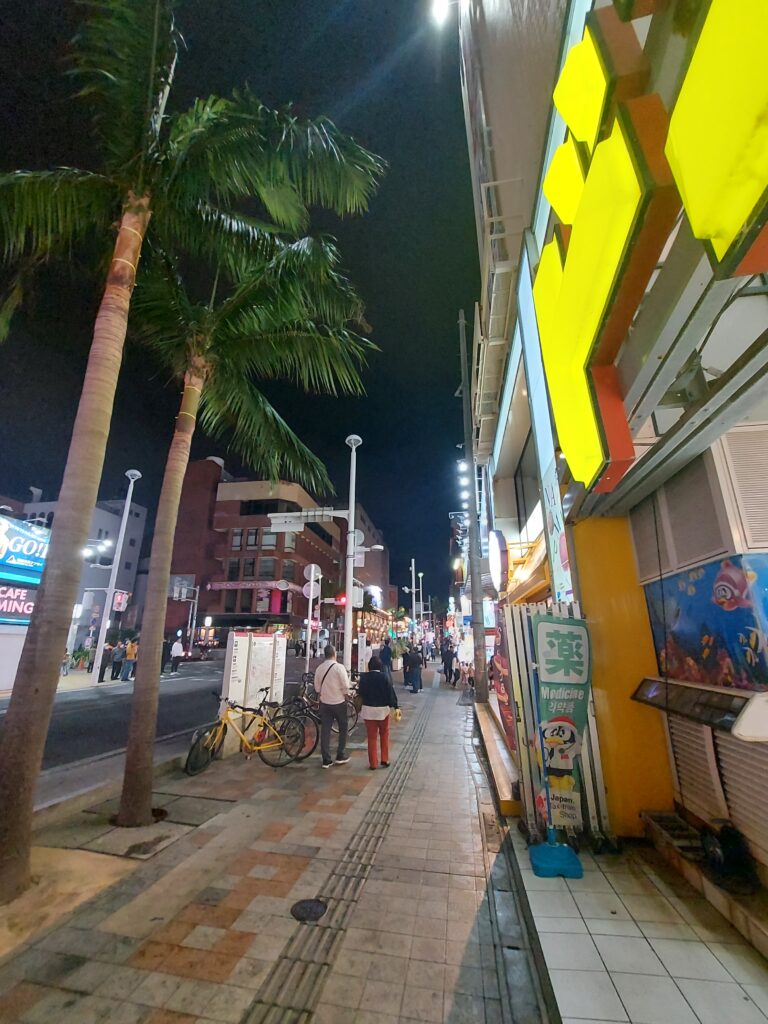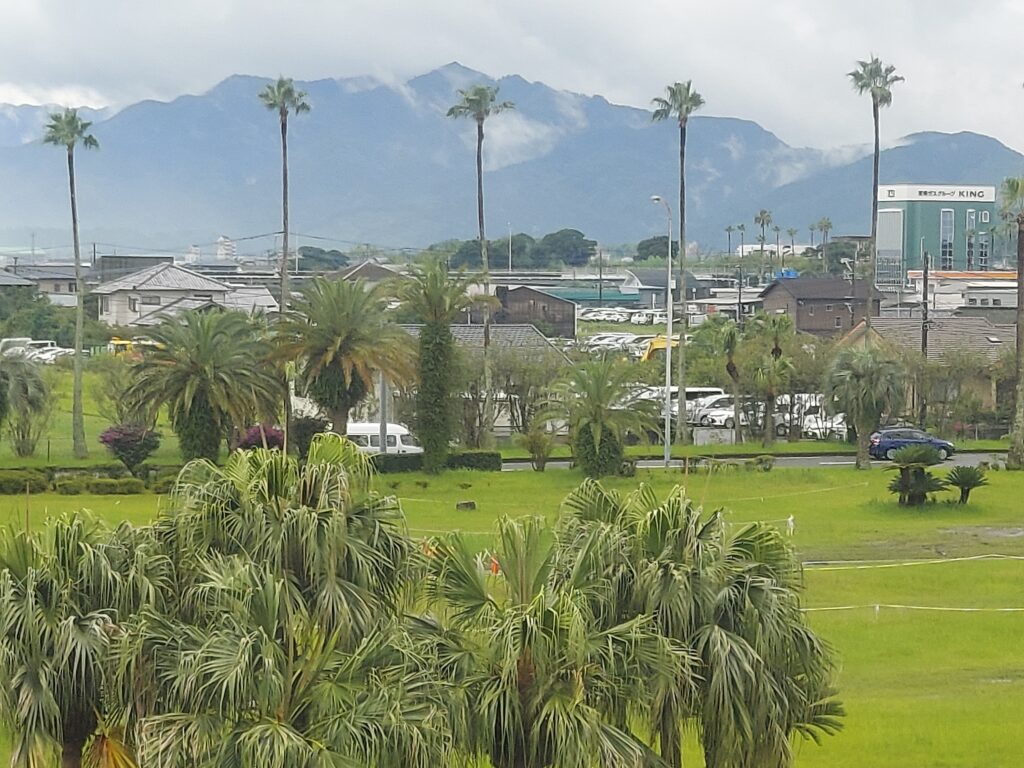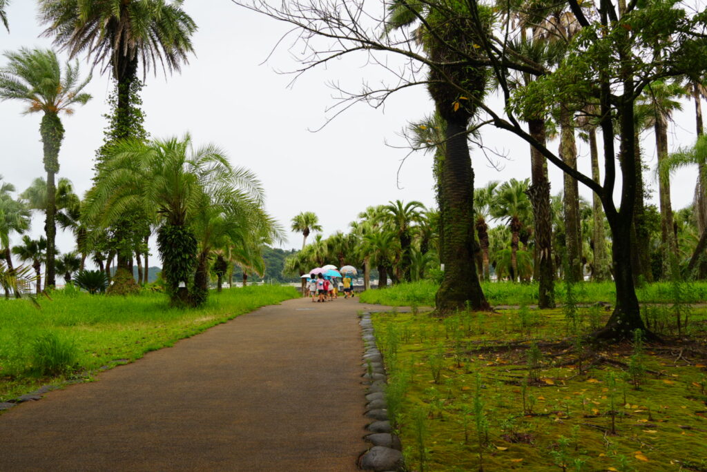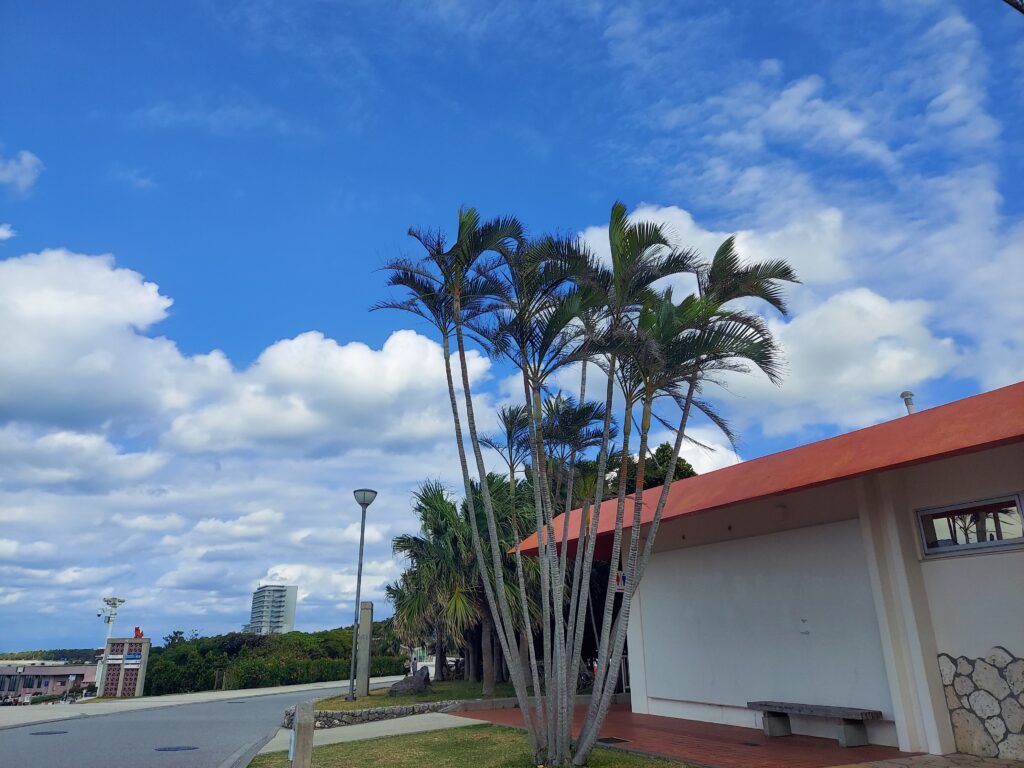 蒸し蒸ししていて、今にも雨が降りそうな天気でした。背の高いヤシの木が南国気分。