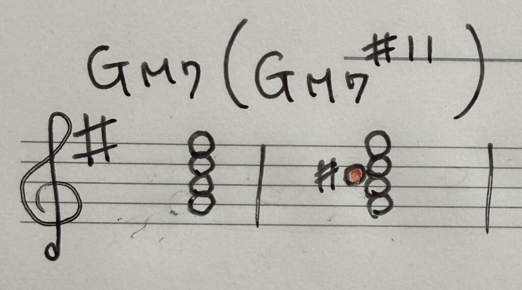 GM7の和音で、雰囲気よくコンテンポラリー