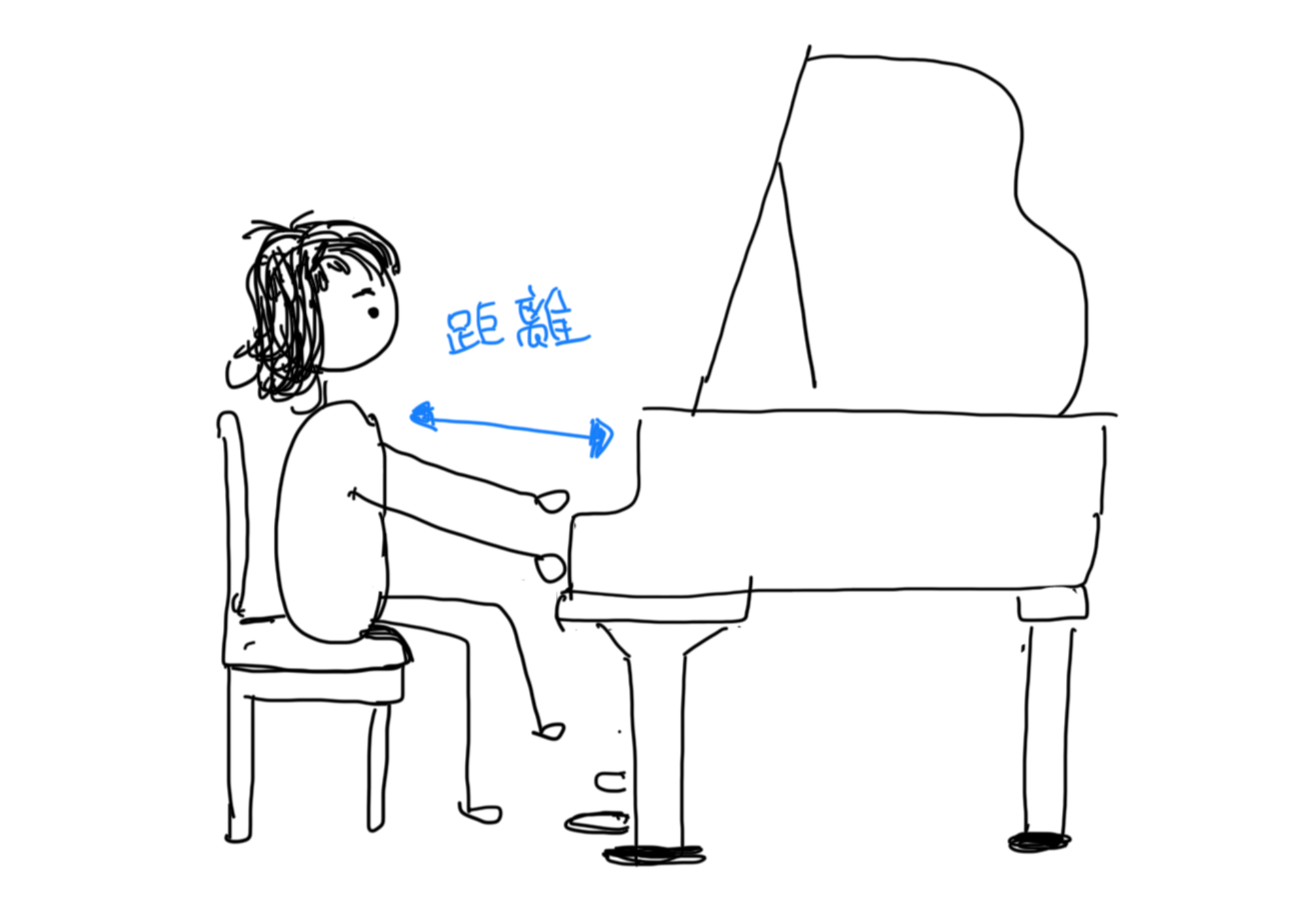 実際にできることは、椅子の高さや、お腹と鍵盤の距離を調整することです。