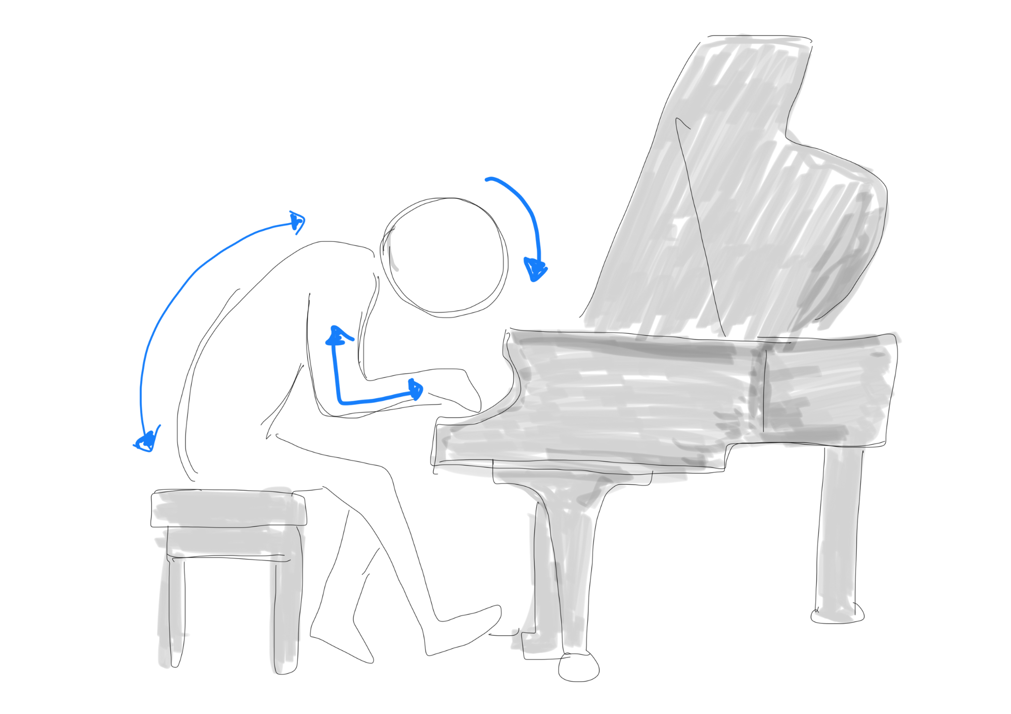 多くの人は、ピアノ練習は手の運動だと誤解してるけど、実際には体全体を使って弾いています。